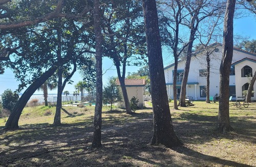 Located on 4 beautiful acres, filled with 100 oak trees and lush greenery, you will be in another world, watching dolphins from the front patio. Bring your boat or park your sea plane! There is a boat launch just down the road (and plans to build a dock in the future). Venture across the street and fish, kayak, paddle board, or just take in the scenery.