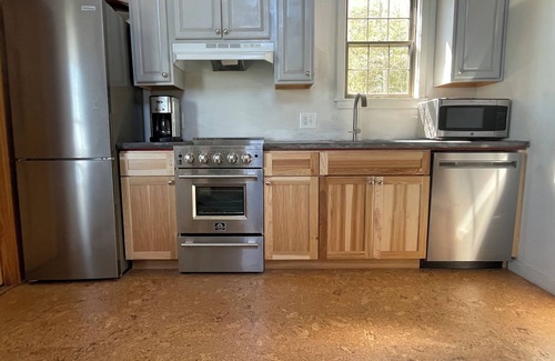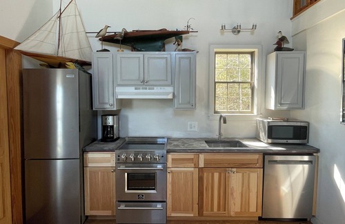 New upscale kitchen 2025. Stainless, concrete counters, cork floor, etc pics soon! This is our Reedville cottage "Bayrise" with private beach on Chesapeake Bay, open concept small contemporary, dog friendly house, maximum 1 dog, 70' from the water, sleeps 4, bed and bath linens Not included. Loft with queen bed and sitting area overlooking the water. The beach can be under water do to storm systems and tides occasionally. The water is always accessible. 1st floor full bath, bedroom with twin bunks, open concept living room and kitchen with WIFI, large flat screen TV for amazon firestick only. 2 kayaks (one a double), 1 canoe, 2 beach chairs, umbrella and outdoor shower. Views from Every window!