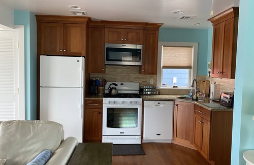 This tastefully decorated cottage features hardwood floors, Cambria Quartz kitchen countertops, gas range & oven, washer & dryer, large walk-in shower, off-street parking for one or two vehicles and ample room to store bicycles and beach gear.