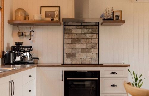 The heart of Bay Hideaway is its open-plan kitchen, dining, and lounge area, seamlessly connected and filled with natural light. With a smart TV and easy access to the front deck, it’s the ideal spot for relaxed mornings and laid- back evenings. The bathroom is sleek and modern, featuring underfloor heating and a spacious walk-in shower – an indulgent touch for your stay.