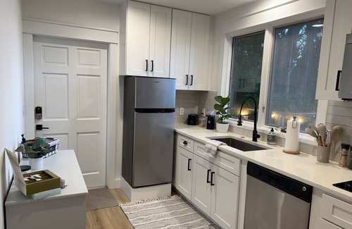 The cottage has a small sized washer/dryer with detergent and basics like cleaning supplies are provided for those longer staying guests. 2 Smart TV’s with prime video (live tv) and wifi.