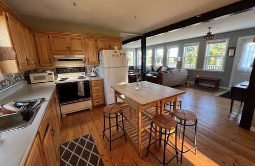 Enjoy staying close to the Bay of Fundy in our renovated Century home on the hill in Margaretsville, Nova Scotia. Relax in our sunny, open living and dining area with exposed beams, pine floors and wood stove. Take a short walk to cross the road to the beach approximately 200 ft. Rockhound and walk at low tide to discover sea treasures as the Bay of Fundy delivers the highest tides in the world. Stroll by the Margaretsville Lighthouse Est. 1859 and visit the wharf where you can view the local art gallery 'The Artist's Circle' If you like to fish you can join Mackerel enthusiasts on the wharf at high tide where rigs can bring in 4-5 at once. 'Holy Mackerel!'
