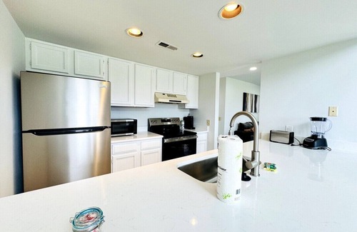 Beautiful and bright 1 bedroom condo with 2 queen beds. kitchen fully equipped, dining area. Large bedroom with balcony. Living room leads to another larger balcony. Washer and dryer in the unit. Sleeps up to 4 guests