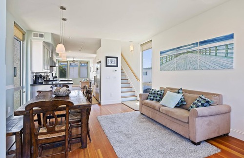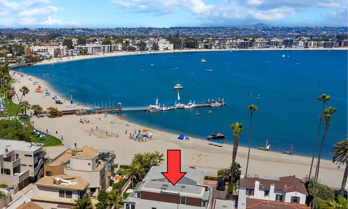 Steps from Mission Beach, Bay, and boardwalk, walking distance to Pacific Beach’s lively restaurants, shops, and Catamaran Resort, this spacious property with three bedrooms suites, each with full baths and sweeping views from upstairs, welcomes families and friend groups.