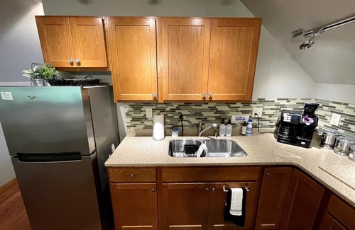 Our cozy Rock Garden Cottage features a main level 2 queen bedroom, upper-level (*must be able to use stairs to access) is an open concept living kitchen layout with futon for extra sleeping, electric fireplace, and bathroom with spacious Italian marble walk in shower, and views out the large windows of the woods. The cottage has large outdoor rockgarden landscape feature with adironndack chairs surrounding a firepit as well as picnic table and grill to enjoy the outdoor space. Enjoy a fire with provided wood perfect to relax and unwind after a day exploring Bayfield (outdoor features are seasonal May-October) Starlink fast internet w/Netflix included, fully stocked kitchen (NO OVEN in this rental), complimentary bathroom toiletries.