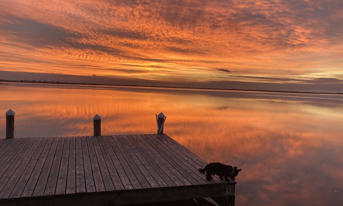 Water views from almost every window...feels like you are on a cruise ship without the boat! This place is a nature lovers dream. The sky is painted different colors from sunrise to sunset to moonrise. From our private pier you can swim, kayak, crab or chill.