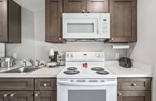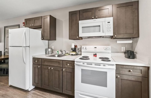 Baymont by Wyndham Ocala Suites offers 40 air-conditioned accommodations, which are accessible via exterior corridors and feature coffee/tea makers and designer toiletries. 55-inch Smart televisions come with cable channels and Netflix. Kitchens offer full-sized refrigerators/freezers, stovetops, microwaves, and separate dining areas. Bathrooms include shower/tub combinations, complimentary toiletries, and hair dryers.