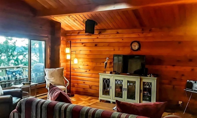 - Huge Log Lodge- Where Mountains meet the Sea w/Pizza Oven
