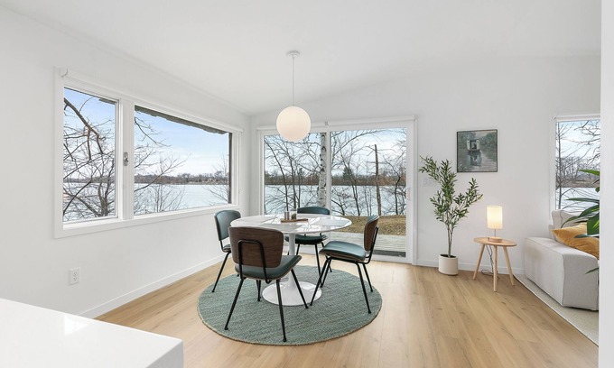 Wake up to tranquility and wildlife at this bayside location on the Mississippi River. Uniquely perched at the water’s edge, the fresh bright interior design provides modern comfort and stunning views of the private bay and river through expansive windows. If you are looking for a quiet respite and a change of scene, this cozy gem shuts out the noisy world and allows nature to remind you of the sights and sounds of serenity.