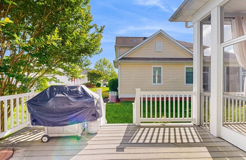Hop on one of the many provided bikes and spend the day exploring on two wheels. When you return, cool down in the central air-conditioning while the washer/dryer does its work. Fire up the grill out on the deck while the kids play foosball in the garage, then serve up dinner alfresco in the sunroom.