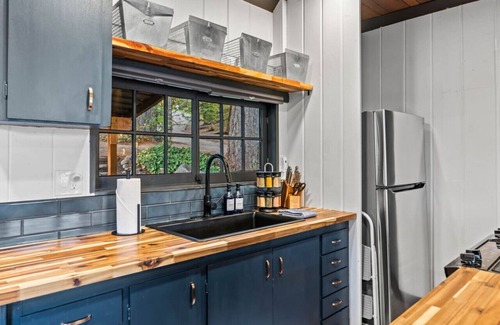 The fully equipped kitchen boasts modern appliances, a butcher block counter space, and all the essentials needed to whip up delicious meals. Retrieve your morning coffee from the coffee bar, then relish it on the enclosed patio, soaking in the beauty of the PNW.
