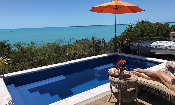 This best kept secret of a house! 3 bedroom 3500 Sq ft House sleeps 6 persons, Screened in porch to watch the amazing sunsets with a spectacular 180 degree view, Plunge pool, Outdoor Barbecue area, Tastefully decorated and fully furnished with all the comforts of your home away from home. Air-conditioning, Internet, Outdoor Shower, Dock house with a mooring for a boat. Concierge services available. Located on a totally private 4 Acre Property with a well stocked grocery and liquor store nearby. . Your ideal dream vacation awaits!!