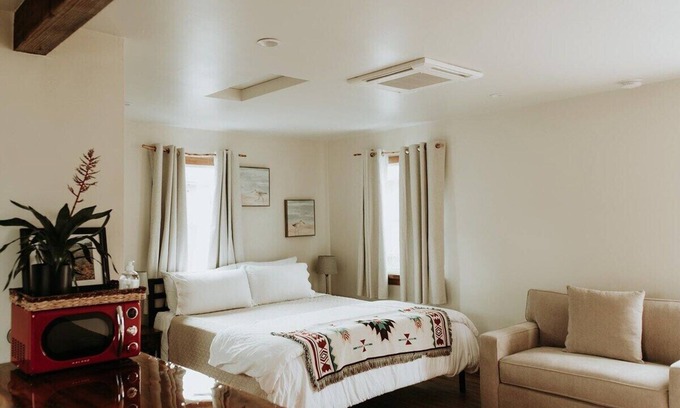 This charming cottage in the heart of Baywood, Los Osos, comfortably accommodates three guests within its 360 square feet of living space. Walk to the nearby Bay and discover endless trails and opportunities for water activities, as well as a variety of restaurants, bars, and local breweries. The outdoor patio, located to the left of the front door, sets the perfect ambiance for unwinding or gathering with loved ones. There's even an EV Charger on-site!