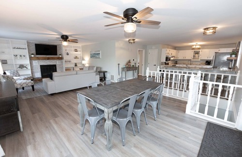 This 3 bedroom lake house offers plenty of space and has comfortable sleeping arrangements for up to 6 guests. With 3 bedrooms, each with its own unique features, your group will have options to choose from a large king suite (bedroom 1), queen-sized bed (bedroom 2), queen-sized bed (bedroom 3), along with a futon, and twin-sized fold-away bed located in the lower level living room and 2 sofas in the upper level living room. Our 2 full bathrooms, and 1 half bath half are equipped with all the essential toiletries, to ensure that you'll have everything you need to start your day fresh and rejuvenated.