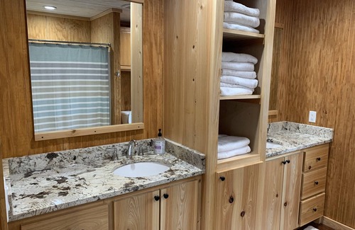 - 3-bedroom cabin nestled on 80 acres with WiFi, AC on private 5-acre lake.
