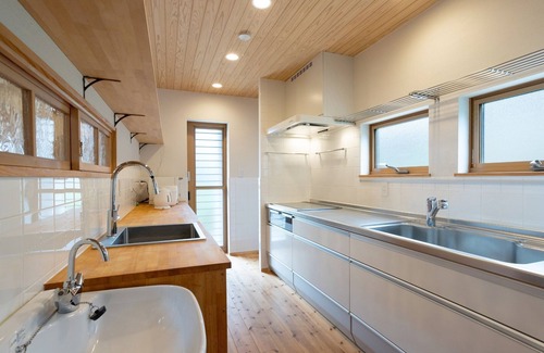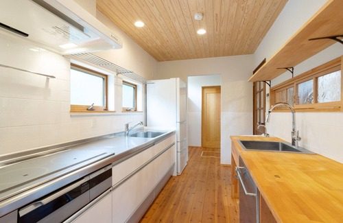 The moment you open the door you will be enveloped in the gentle scent of woodThe highlight of this villa is its high ceilings and spacious living room At the large dining table you can feel the warmth of the wood and its scent We promise you a peaceful time together