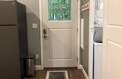 This tree house is located within a beautiful wooded site, sculpted around majestic hills with breathtaking views of Northern Michigan's natural beauty. All of the amenities and comforts of home are provided including a washer and dryer, a private balcony with a priceless view, and a cozy fireplace. This studio style cabin offers two queen size beds, love seat, reclining chair, and dining table/chairs. Air mattress, pack & play, and high chair available upon request.