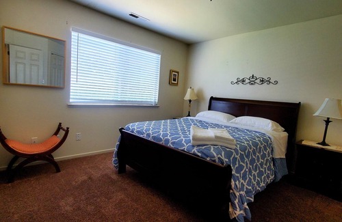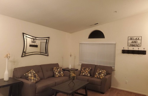 An inviting spacious single story home awaits you. Newly furnished modern home. Each private bedroom has a closet and queen size bed. Living and Dinning room combo for group relaxation, a 2nd living room with TV as well as a queen size sofa bed.. Stocked kitchen with island and large size appliances. 2 full baths with tub and shower combo. Soft water filtration. Front and backyard patio. Free driveway parking. Secondary curbside parking in front of home, near & around the neighborhood. Best budget choice where guest will receive quality for the price. The more nights booked will result in a better value! Book a short or long-term work or vacation stay today and "Be Our Guest". Thank you.