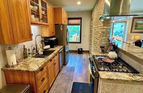 Peaceful, luxurious, charming, unique 1865 Cream City Brick downstairs 2 bed, 2 bath apartment. Enjoy a wood-burning stove, leather, granite, stainless steel, gas stove (air frying oven), baby grand piano, multi-spray walk-in showers with Venetian marble, and heated Spanish tile floor. Newly remodeled with all new windows, I've spared no expense to make this space the premier Airbnb in Port Washington. Walk to shops, eats, beaches, and the nature preserve. Handicap accessible & kid/dog-friendly.