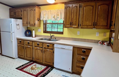 The bunkhouse is pet friendly with some limitations in place to ensure that the home does not feel like a pet home to non-pet guests. Specifically, pets are not allowed in the carpeted parts of the home or on furniture. Various gates are provided to ensure that pets remain on the linoleum floored areas of the home only or outside in the large provided dog run. As well, all pets must be well behaved and not have an nuisance or otherwise destructive behaviors. Guests should indicate the plan to bring a pet in the booking reservation and an additional pet fee will apply.