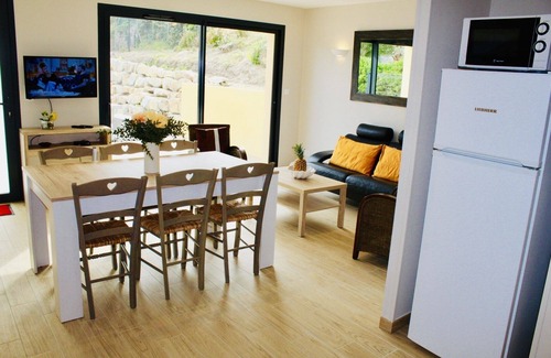 The House has a flat screen television (108 cm) with TNT, cables and satellite (French, English and German channels, 27 German channels), a Whirlpool refrigerator with freezer compartment, a Bosch dishwasher, a Bosch washing machine, Bosch electric cooker, oven, 4-burner vitroceramic hob, microwave, SENSEO coffee maker, isothermal electric coffee maker, electric kettle, electric toaster, electric vegetable blender. The bathroom with walk-in shower, 2-drawer washbasin unit and mirror, a hairdryer, an iron and ironing board, a towel dryer.