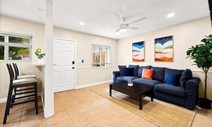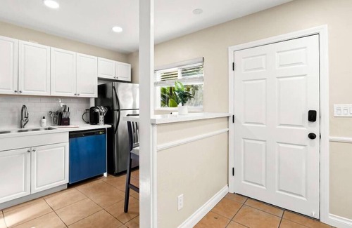 Tucked away in a tropical courtyard just steps from the beach, this fully renovated one bedroom apartment complete with kitchen and living room has everything you'll need for your next Santa Barbara getaway. Sleep soundly on a brand new mattress with hotel quality linens. The pull out sofa with queen bed is perfect for kids! The kitchen is fully equipped with essentials. Bathroom products from Public Goods. The central location provides easy access to all SB has to offer. Pet friendly!