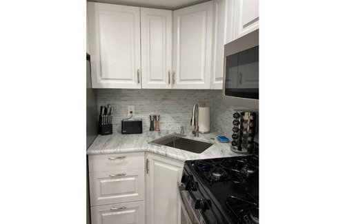 This recently updated apartment boasts two comfortable bedrooms and a modern bathroom, making it suitable for wedding groups of any size. The fully equipped kitchen features stainless steel appliances and granite countertops, giving you the freedom to prepare meals and host celebrations at your leisure. You'll find a cozy living room with a sofa bed and TV, perfect for unwinding after a day of wedding festivities. Additional amenities include a grill for outdoor cooking, a washer and dryer for your convenience, and even a desk for planning your special day amid the excitement of Atlantic City.