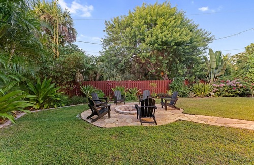 Rediscover Paradise. Quiet beach neighborhood. Walk down a sandy road under the cover of a luscious tree canopy. You are steps away from your private dog friendly beach on the east side of A-1A. The azure colored Atlantic Ocean is calling your name. Beautiful 3 BR 2.5 Bath w 2 car garage, family vacation home get away. 2 King Beds & 1 Queen. Home has a cozy front porch for sipping coffee or cocktails. The screened in back patio gives you complete privacy to enjoy the heated pool. A baby safety pool fence is available if needed. The patio also has a gas BBQ, table and chairs and a sofa to relax in. The fenced in backyard has a spacious fire pit & ample room for your dog and kids to have fun. There is an oversized private outdoor shower with hot & cold water for rinsing off after a day at the beach . All BR's have TV with cable and WIFI. Separate Laundry Room with brand new washer & dryer. All amenities for the beach included. High Chair & Pac-n-Play for baby. Bikes, Kayaks, Corn Hole & Ping Pong Table, Books, board games for family fun.