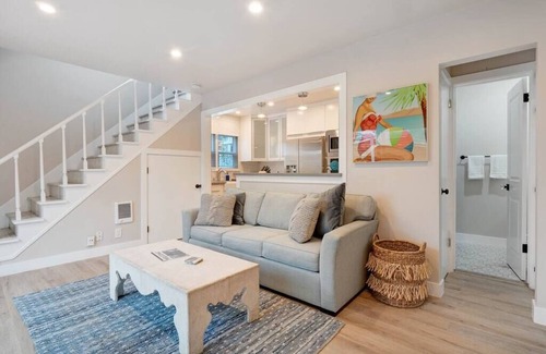 Light, airy, serene 1 bedroom bungalow located just steps away from La Jolla Shores Beach. First floor has living area with pull out QUEEN sofa, half bath and full kitchen equipped with stainless steel appliances. Upstairs has washer/dryer, nook with a desk, bedroom and full bathroom.