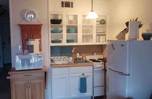 Steps away from North Beach, Corpus Christi with great restaurants and attractions nearby. Our place (all of the condos) is 420 sq ft has a great oceanview from the balcony, is centrally-located and newly updated decor. We welcome families, couples, friends and single folks on vacation, baecations, work or whatever brings you to the area. There is a mandatory complex parking/gate access key fee of $20 @ check-in (you should get a card for the gate AND a parking sticker for your car). Pool in bldg 1 is super convenient with shared laundry facilities (credit operated with QR code).