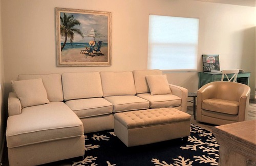 This Newly Renovated two-story townhome is just a short walk from the beach and boasts all the comforts of home. With new furnishings in every room -- including the master bedroom, guest bedroom, and family room, you'll enjoy the beach style décor as you relax to the sounds of the waves you can hear through open windows. For the cooking enthusiast, you'll find a fully furnished kitchen perfect for dining at home and entertaining. Also features spacious closets and large laundry/storage room. Enhanced professional cleaning.