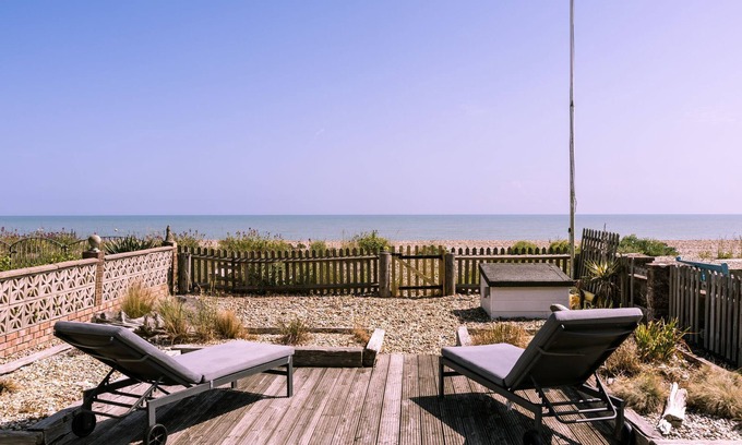 Beach Cottage with garden that blends into the beach in Pevensey Bay | Cottage in Pevensey Bay