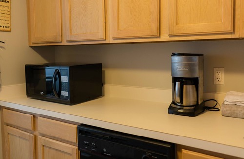 Well equipped kitchen with full size appliances, dishwasher, microwave, toaster oven, blender. Inside unit laundry room.