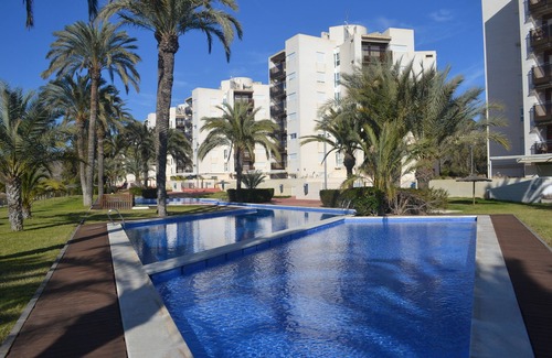 Yes, this Los Puertos apartment has a swimming pool. Check the Facility Overview section for details about the pool and other available facilities.