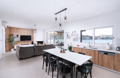 The house offers three fully equipped bedrooms with lovely panoramic sea views, an open plan living room with a fully equipped kitchen with large windows with gorgeous sea views and a big fully equipped dinning table.
