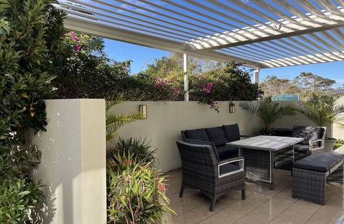 The house comfortably accommodates a maximum of 7 guests with three bedrooms and 2 bathrooms. Each bedroom offers a serene and peaceful atmosphere, complete with plush beds, soft linens and tasteful coastal décor. The fully equipped kitchen provides everything you need to prepare delicious meals, and the dining area spills onto the protected rear deck surrounded by an oasis of plants, many of which are edible.