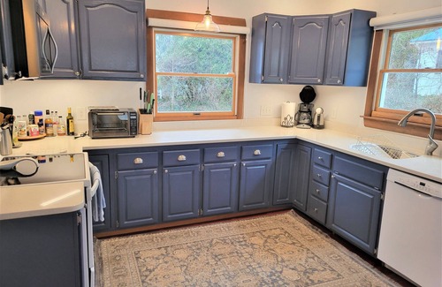 Our main kitchen is fully equipped for preparing meals. We have a gas grill and a double crab cooker in front of our detached garage. You can buy locally-caught crabs from 'Chesapeake's Bounty' farmer's market in our village where they also sell fresh, local produce and other seasonal fish. Have a crab feast on our picnic table overlooking the bay! Enjoy the fire-pit and two hammocks on the bluff, which overlooks the bay.