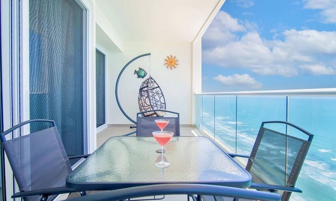 Beautiful ocean view from our 2bedroom, 2bath condo. ALL appliances and furniture are brand new, and Convenient access to the onsite restaurant/cantina, pool areas, and beach.