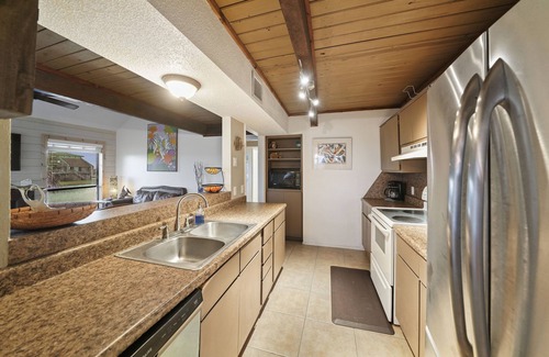 We offer an updated three bedrooms, two full bathrooms, comfortable living room with a large smart TV, and a high speed WIFI and a compact computer table for busy people who have to combine work and vacation together. Comfortably accommodates 6-8 people. Its fully stocked with bath towels, dishes, cookware, microwave, coffee maker, ceiling fans, and central AC.