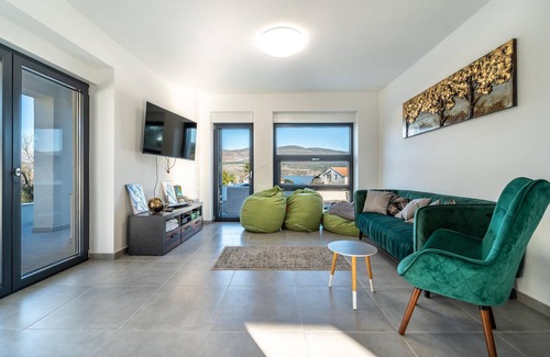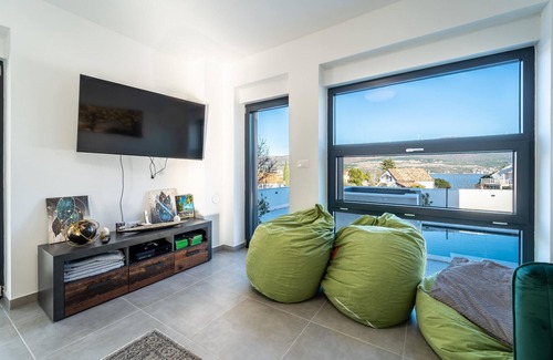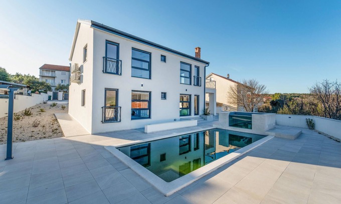 Overlooking the Karin Sea, this modern vacation home with pool welcomes you for an unforgettable family vacation.