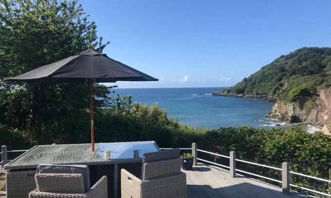 Beach Front House with Stunning Sea Views and Free Use of a Local Indoor Pool is located in Talland.