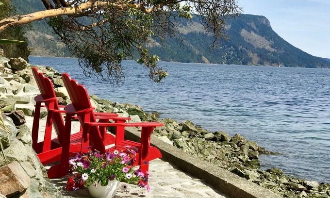 Welcome to your private oceanfront retreat in Maple Bay, British Columbia. This charming 860 sq. ft. studio suite offers breathtaking ocean views and a serene setting just 22 steps from your own patio. With over 100 feet of exclusive oceanfront and a two-level patio extending over the water, you'll be enveloped in tranquility, listening to the soothing sounds of the sea. Look out for seals, otters, herons, eagles, and occasionally orcas in the tranquil bay across from Salt Spring Island. Guests rave about waking up to the gentle waves, unwinding on the oceanfront patio, and picking fresh fruit from the trees just outside the suite.