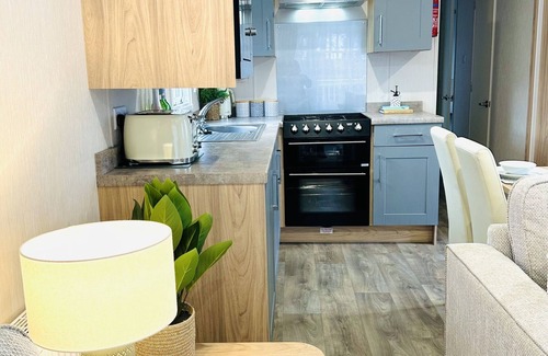 Beach Grove is the epitome of a modern and chic holiday getaway by the coast; it has 3 bedrooms - a master double bed, 2 twin bedrooms, and also a double pull out sofabed in the living room - sleeping up to 8 people. Beach Grove is only a few years old and has been carefully designed to meet our guests high standards and to keep up with modern trends. Elegant soft furnishings have been added to give the lodge an extra touch of comfort. Beach Grove is complete with a spacious living area incorporating an open plan kitchen/ diner, bathroom facilities, gas, water, electric, Wifi, Smart TV, private decking with outdoor seating and on-site parking close by. It is in a very quiet area of the park, tucked away with a beautiful woodland view to the rear.
