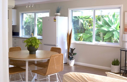 We welcome you to our beach guest house. The guest house has a seperate bedroom with a queen size bed. Seperate bathroom and living area. Fully equipped kitchen with large oven, fridge and espresso coffee machine. Spacious lounge with large comfortable couches to soak up the sun or enjoy watching a movie. Small outdoor area with table and chairs surrounded by greenery but able to hear the sea.