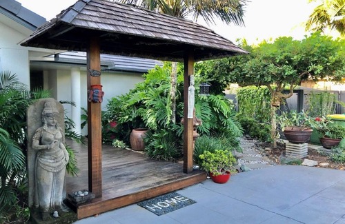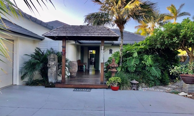 "Beach Heaven" is an open and airy home, decorated with plants, artifacts & creatively landscaped giving it a hint of a tropical Asian Resort.