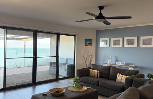 The property is a 4 bedroom 2 bathroom house that will be yours for the duration of the booking. It is 20 metres from our front door to the water's edge at high tide. At the rear is an enclosed, all weather entertaining area 15M x 6M with lounge and dining settings. Additional chairs are dotted around. There is a Lego 4 seat activity table complete with blocks. 1 permanent esky, a large gas BBQ and 2 overhead fans. This area is essential if you are unlucky enough to stay when its blowing 30knots from the South! It is pet and child secure. Adjacent to this is a shaded outdoor area that is also pet/child secure.