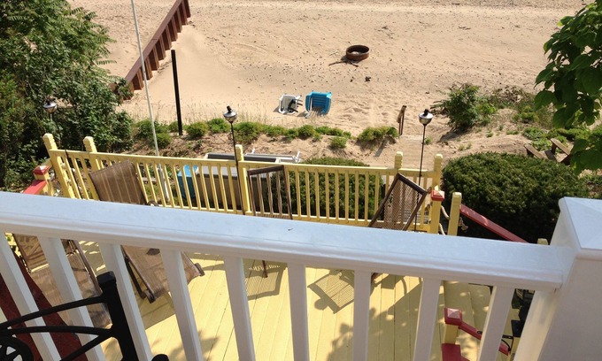 The upper level has the other 4 additional bedrooms (2 queen bedrooms). Big screen tv in the main master bedroom, Full bath and half bath. The upper deck located off of the 2 queen bedrooms has a beautiful view of Lake Huron, outdoor seating with privacy screen.