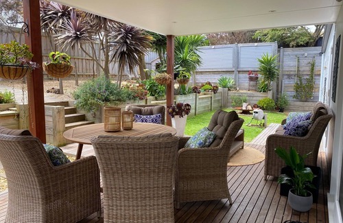 Beach Relaxation: Enjoy the pristine beaches of Rye, Victoria, just a stone's throw away from your stunning wedding stay at the beach house with three outdoor dining areas. Unwind on the soft sands or take a refreshing swim in the clear waters, creating the perfect atmosphere for your romantic getaway.