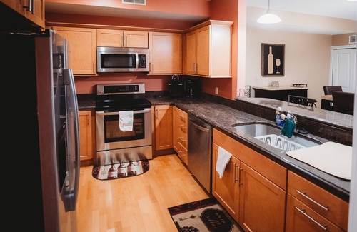 The kitchen is fully equipped: dishwasher, microwave, coffee maker (Keurig and Drip/traditional), electric oven, refrigerator with ice-maker, toaster, cookware/bakeware, glassware and dinnerware for 6.