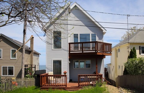Beautiful beachfront property with amazing location. Remodeled first floor in 2019 with a bright, modern beach house aesthetic. Includes a bedroom with a balcony and gorgeous view of the lake, a second bedroom for kids with two bunk beds plus a queen-size bed, luxurious upstairs bathroom as well as full bathroom in the basement, in-house washer/dryer, open kitchen fitted with all necessary appliances, large living space with TV, gas fireplace, and sectional. Private beach access and deck space for watching stunning sunsets over the lake. Great community, just a few doors down from Marge’s Lakeside Inn, which offers drinks and live music. Within easy walking distance of several restaurants and bars, a boat launch onto the Irondequoit Bay, and Sea Breeze Amusement Park. Extremely family-friendly but can also be enjoyed by couples, singles, friend groups looking for a getaway- just about anyone!